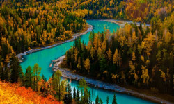 沿喀纳斯河一路漫步,欣赏西伯利亚落叶松原始森林、白桦林风景,神仙塆,卧龙湾,月亮湾,鸭泽湖,游览喀纳斯湖。